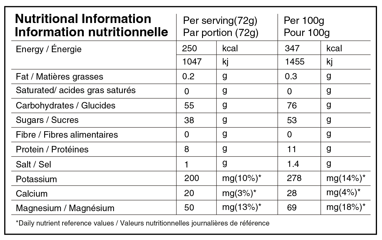 Kann enthalten:Soja, Milch, Eier. Personen, die auf Senf allergisch sind, können auch auf Rapseiweiß allergisch sein. *Isomaltulose ist eine natürliche Quelle von Glukose und Fruktose, die aus Zuckerrüben gewonnen wird.
