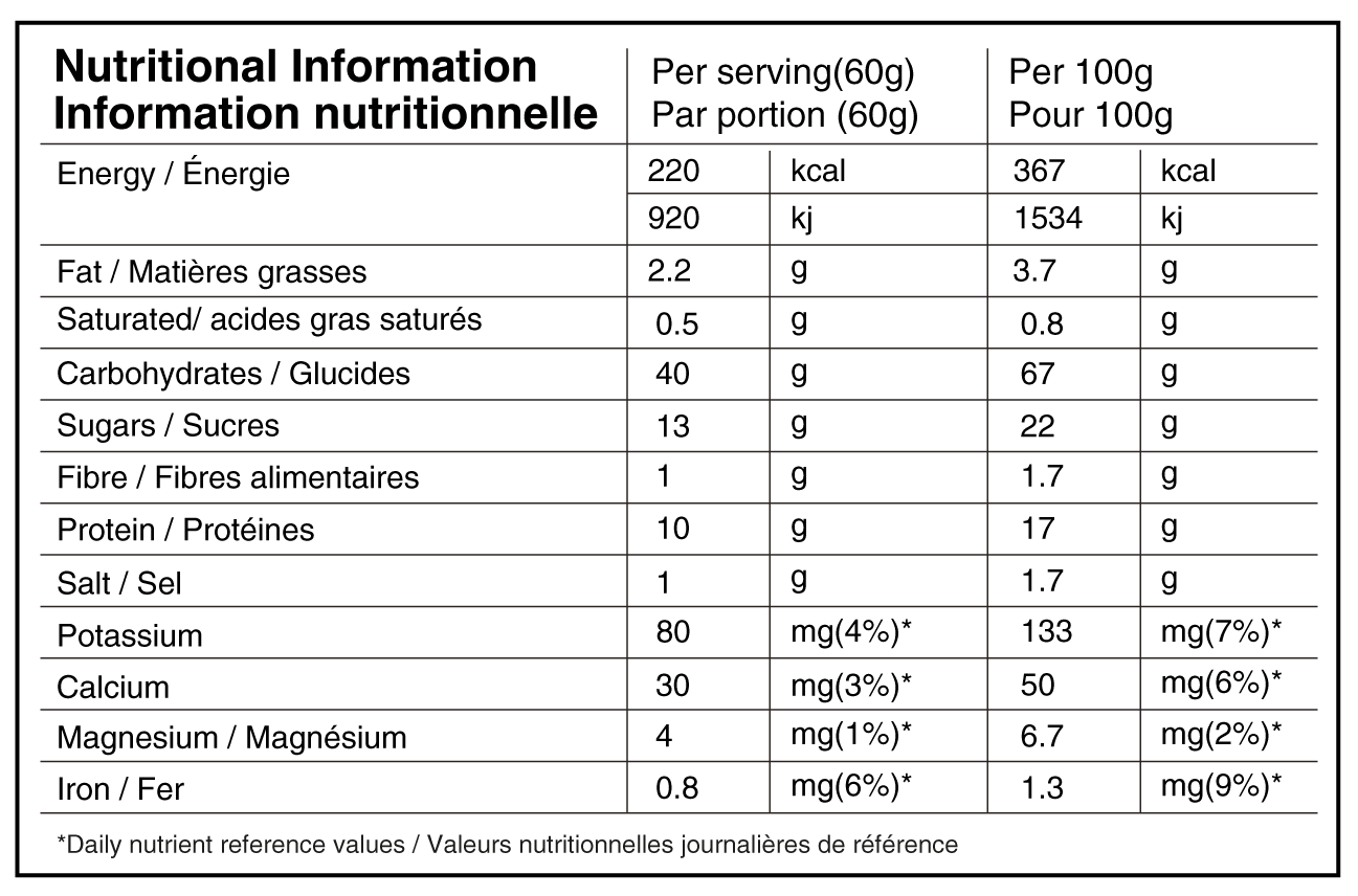 Hydrolysiertes Hafermehl (glutenfrei), dehydrierter Reisextrakt, Rohrzucker, Erbsenproteinisolat, Rapsproteinisolat, Meersalz, natürliche Aromen. Kann enthalten: Milch, Eier, Soja. Personen, die allergisch auf Senf reagieren, können auch allergisch auf Rapsprotein sein.
