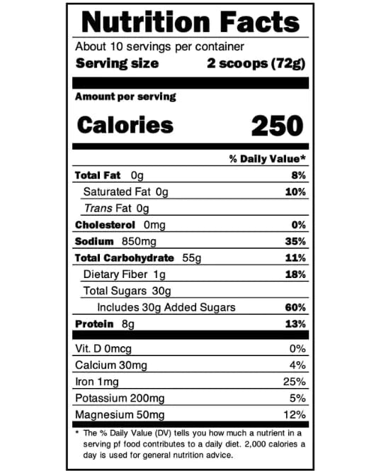- 55g carbohydrates: simple and complex natural carbohydrates