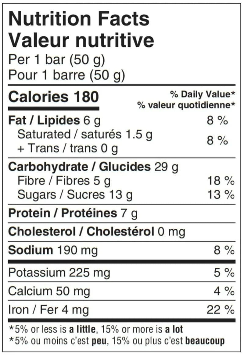 Date paste, Brown rice syrup, Organic evaporated cane sugar, Sunflower seeds, Chicory root fiber, Soy protein isolate, Rolled oats, Spray dried instant coffee, Organic rice flour, Pea protein isolate, Cocoa butter, Natural flavours, Gum arabic, Cocoa nibs, Salt, Sunflower seed oil, Mixed tocopherols.